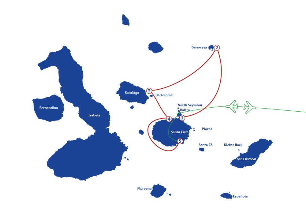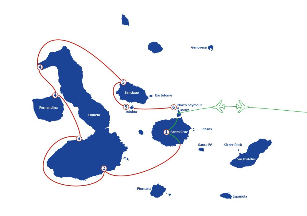 Aquí tienes los itinerarios de nuestros cruceros en Galápagos desde 4 a 8 días: