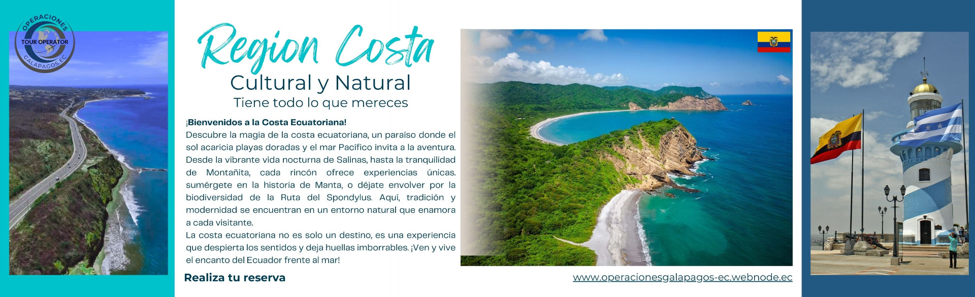 La costa ecuatoriana es un destino que combina la belleza natural del océano Pacífico con la riqueza cultural de sus pueblos. A lo largo de la Ruta del Spondylus, el visitante encuentra playas de arena dorada, aguas cálidas y una biodiversidad que sorprende en cada rincón.